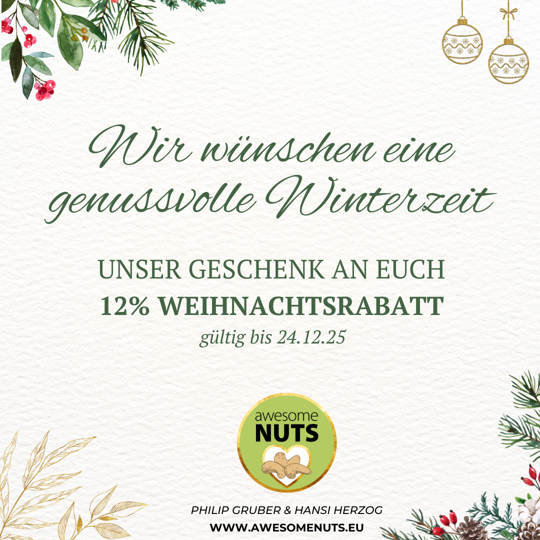 🌟 Tipp: Bestellt am besten bis 15.12., wenn ihr eure Nüsse rechtzeitig unterm Baum haben möchtet – rund um Weihnachten ist immer viel los!